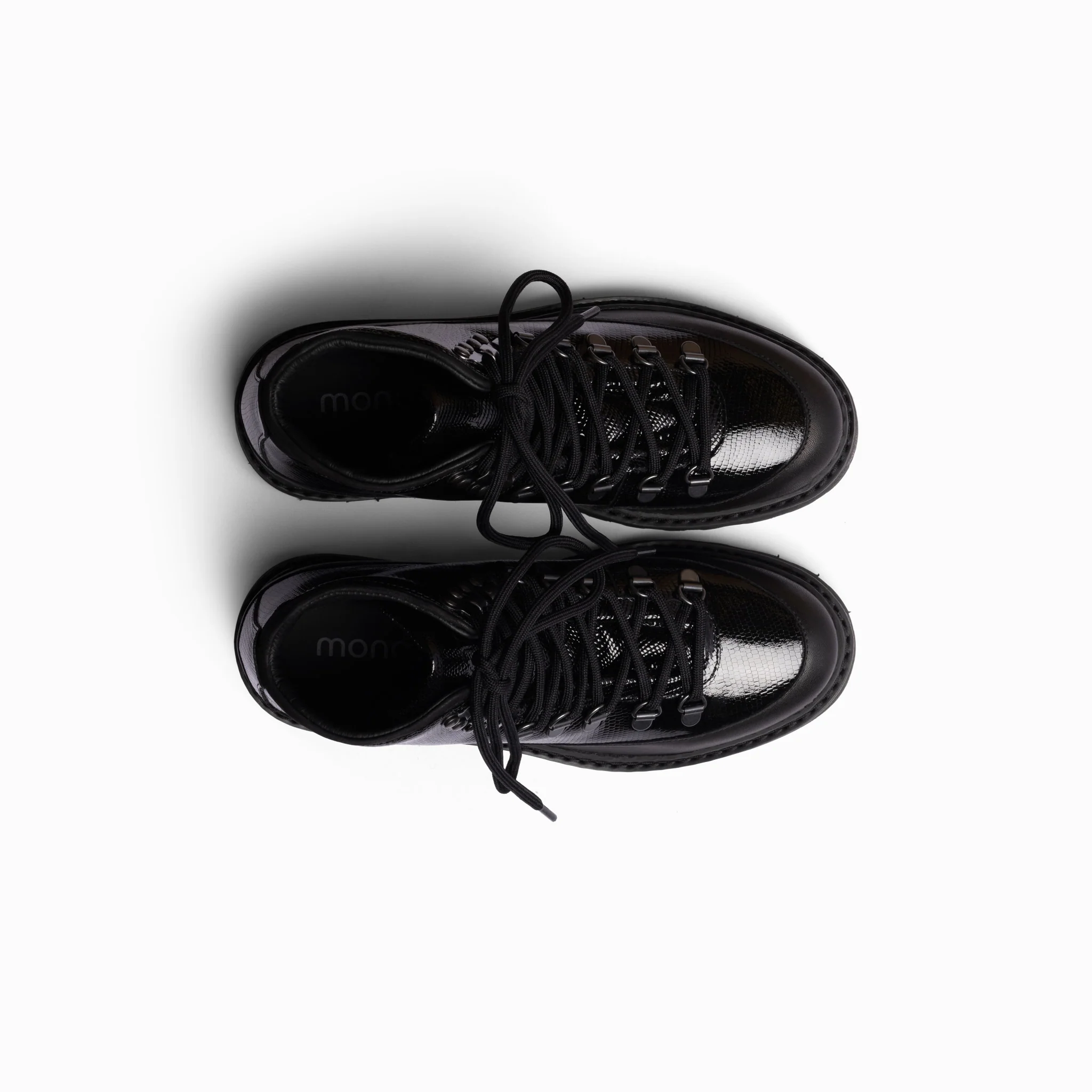 Core Cap lizzard is a traditional hiking boot with a twist, clean lines and a classic design, crafted with premium materials from Italy. This boot comes in patent lizzard leather and has a protective mudguard that is made from leather. The shearling lining combined with the micro/rubber outsole gives this boot a supreme level of comfort.